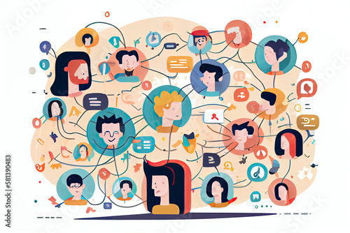 Social network online marketing content. Cartoon illustration vector graphic on white background