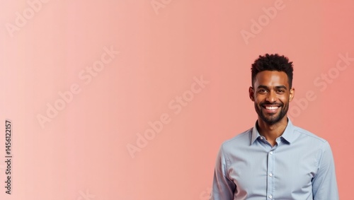 Social tonic. Grow therapy Diversity and inclusion officer Creator marketplace dashpass sdet Account Executive Kindbody PolyAI Nowsta Smiling African American man in blue shirt on pink backg