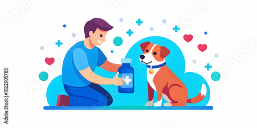 Soft Abstract Pet Medication Time Concept: Gentle Care and Love in Administering Medicine to Dogs - A Captivating Visual for Pet Health Responsibility