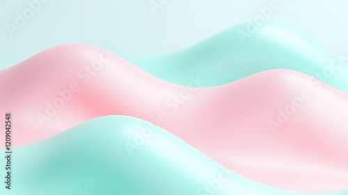 Soft Abstract Waves of Pastel Pink and Mint Green Creating a Calm and Serene Background for Design Projects