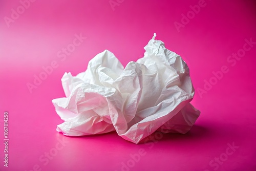 Soft and Delicate Tissue Isolated on a Vibrant Pink Background, Showcasing Textures and Colors for a Fresh and Clean Aesthetic in Stock Photography