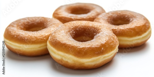 Soft and fluffy donuts arranged attractively on a white surface with a slight sheen