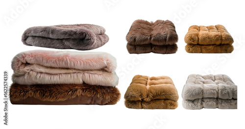 Soft and Luxurious Faux Fur Blankets in Various Colors and Textures, PNG bundle collection, Isolated on Transparent Background