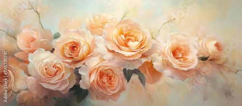 Soft and Romantic Bouquet of Delicate Tea Roses in Pastel Colors for Elegant Floral Decor