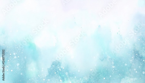 soft aqua watercolor background with snow like white splatter for winter designs, serene and abstract aesthetic