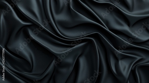 Soft black fabric draped artistically on a surface, showcasing intricate folds and shadows in low light