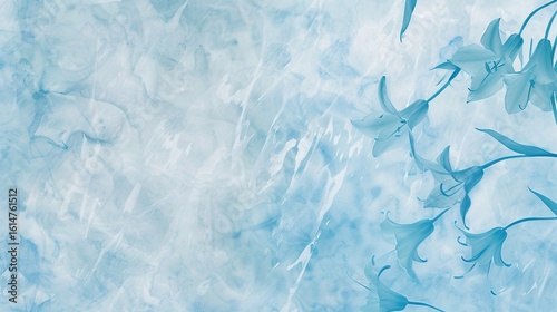 Soft Blue Background Adorned with Delicate Flowers, Framed by Ample White Space—A Blend of Serenity and Floral Charm, Where Blooms Add Grace to the Calm Blue Canvas
