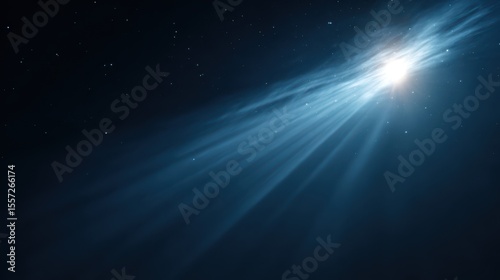 Soft blue lens flare appearing from the top-right corner, casting subtle rays and light streaks across a deep night sky background