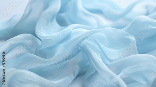 Soft blue pastel fabric gracefully drapes, creating an ethereal abstract backdrop, perfect for minimalist designs and serene artistic expressions, inviting tranquil creativity.