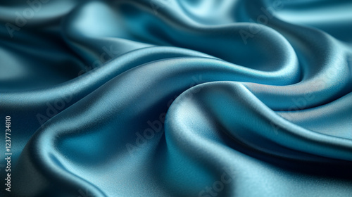 Soft blue silk fabric draping elegantly with gentle curves and shadows