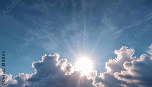 Soft blue sky with wispy clouds and a small sun at the top, serene atmosphere, blue sky
