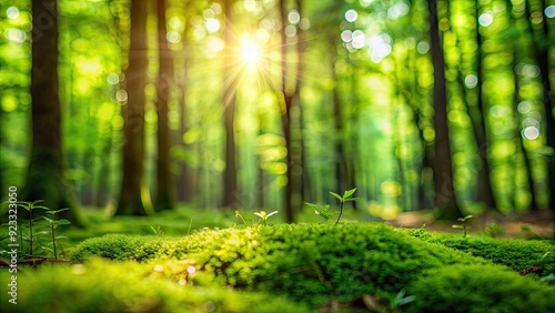 Soft blurred background of green forest with shallow depth of field, nature, foliage, atmosphere, summer, environment