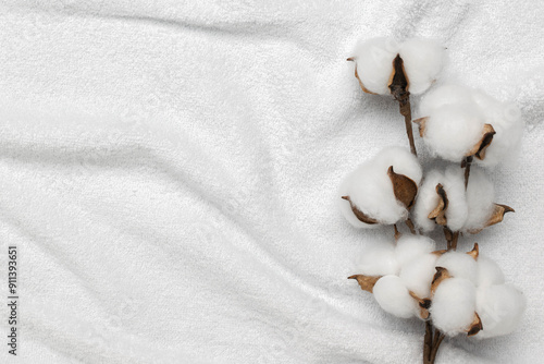 Soft Cotton Bolls on White Fabric Background - Natural and Organic Textile