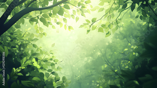 Soft Dreamy Green Leaves with Gentle Bokeh Light