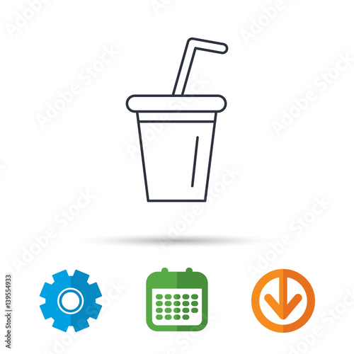 Soft drink icon. Soda sign. Calendar, cogwheel and download arrow signs. Colored flat web icons. Vector
