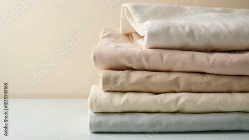 Soft eco friendly bamboo fabric stack in neutral tones silky texture