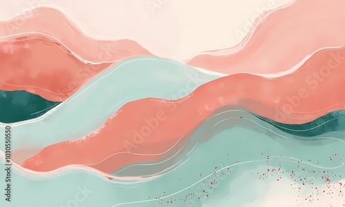 Soft flowing brush strokes in light coral and mint with dotted textures