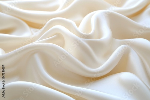 Soft, flowing cream-colored fabric with gentle folds and ripples creates a smooth, elegant textile surface