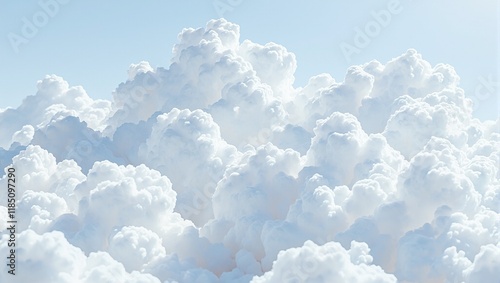 Soft fluffy clouds in a blue sky with gentle gradients of white and light gray creating a serene atmosphere