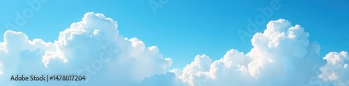 Soft, fluffy white cumulus clouds drift across a vibrant azure sky , light, image, expanse