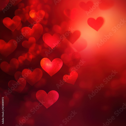 Soft focus red hearts on vibrant background create romantic atmosphere