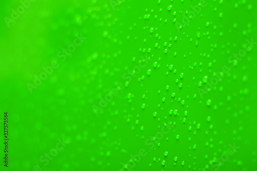 soft focus water drops on vivid green surface perspective blurred background space concept