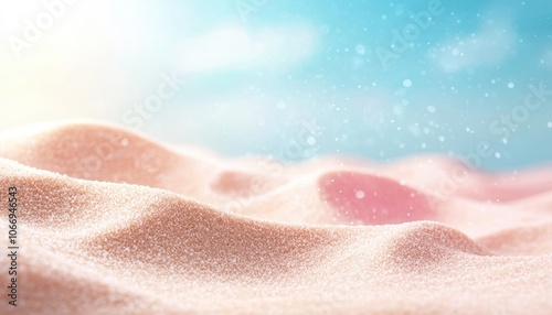 Soft, gentle sand dunes under a bright sky with a dreamy atmosphere, creating a serene and tranquil setting perfect for relaxation and escape.