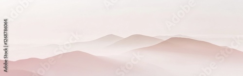 Soft gradient over tranquil mountains at dawn highlighting beige taupe hues and gentle mist