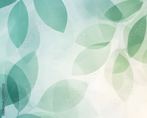 Soft green and blue overlapping leaves create serene and calming background. gentle hues and translucent layers evoke sense of tranquility and nature beauty