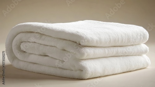 Soft, Luxurious, White Towels Stacked Neatly on a Minimalist Background Ideal for Spa, Bathroom, or Hotel Decor, Adding Elegance and Comfort to Any Space
