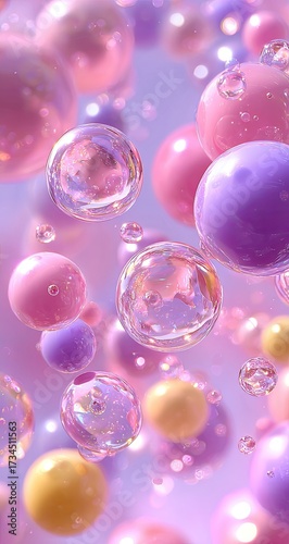 Soft, pastel orbs with glassy highlights, dreamy, bright