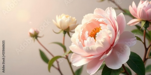 Soft Pastel Peonies in Gentle Sunlight, a Delicate Floral Arrangement Displaying the Beauty of Nature's Subtle Hues