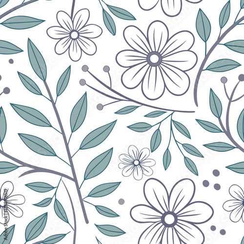 Soft pastel seamless tile pattern with delicate flowers and leafy accents for a calming garden look concept as Delicate flowers and leafy accents arranged seamlessly in soft pastels for a calming gard