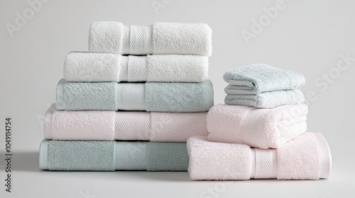 Soft pastel towels stacked in a variety of textures, creating a clean and fresh look perfect for cozy home decor.
