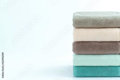 Soft pastel towels stacked neatly, perfect for calming bathroom aesthetic