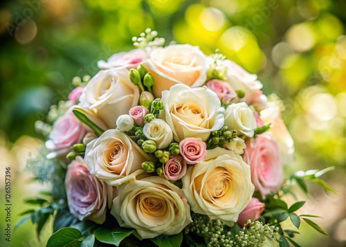 Soft Pastel Wedding Bouquet: Delicate Pink & White Roses with Greenery