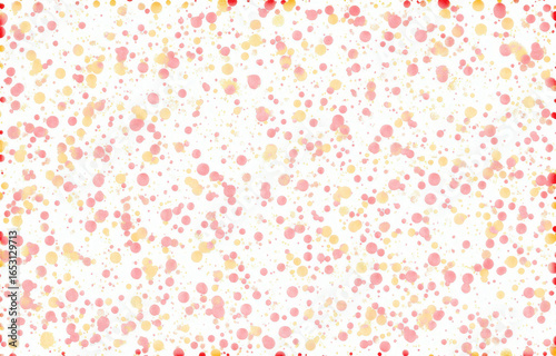 Soft pink and yellow watercolor dots scattered on a transparent background