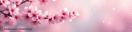 Soft pink cherry blossom branch, delicate brushstrokes, spring serenity , springtime, flower