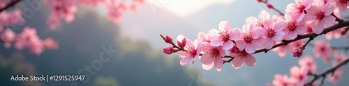 Soft pink sakura blossoms in a misty environment, Taichung, background blur