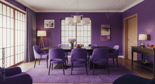 soft purple vivid Dining Room design Contemporary Ryokan decor
