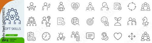 Soft Skills Icon Set – Symbols of Communication, Leadership, Empathy, and Personal Growth