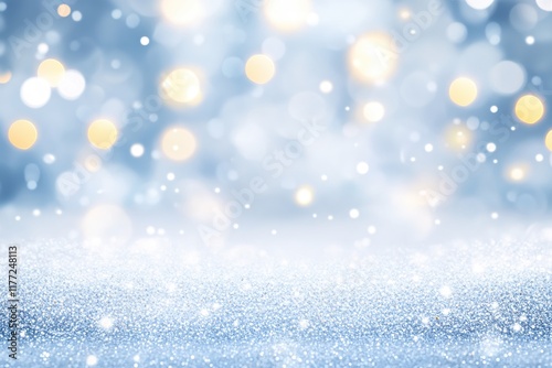 Soft Snowy Background with Glowing Bokeh Lights and Gentle Snowflakes Falling