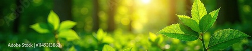 Soft sunlight filters through lush green leaves, foliage, greenery, trees
