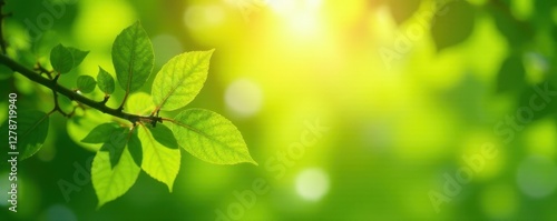 Soft, sunlit bokeh of green leaves and branches , summer, soft, leaves