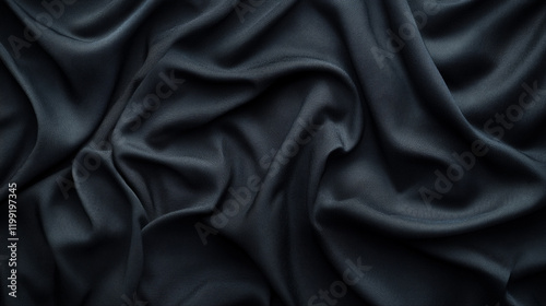 Soft, textured dark fabric draped elegantly on a surface displaying intricate folds and shadows