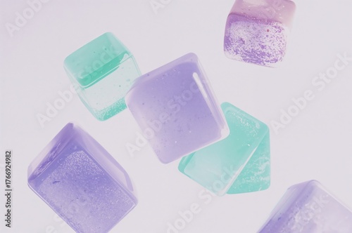 Soft translucent pastel blocks floating weightlessly against a pristine white minimal backdrop