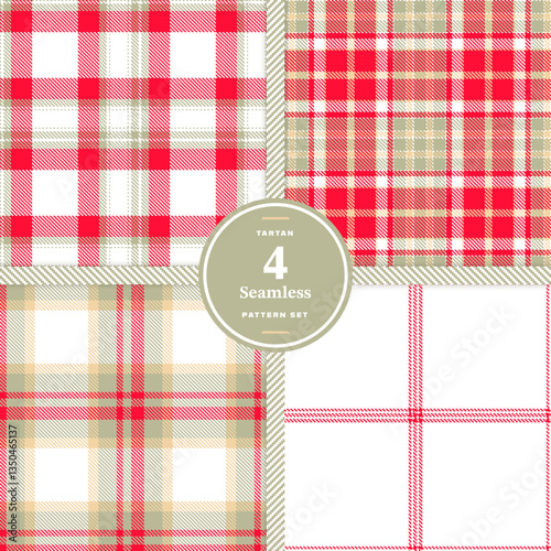 Soft Vanilla Seamless Tartan with Golden Ochre accents Fabric Design Set of 4