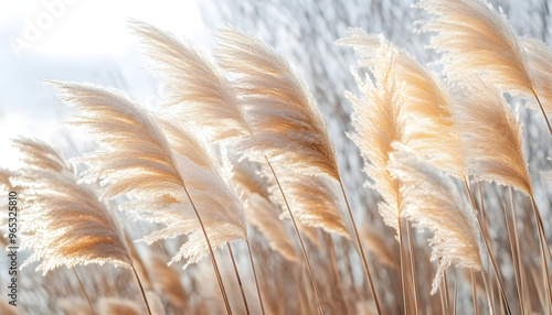 soft vegetation on an abstracted natural background selloan cortaderia pampas grass with a boho style background of dry reeds wintertime fluffy long grass stems generative ai