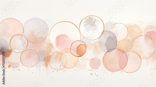 Soft watercolor circles in Gold, Champagne colors styled with a playful vibe, whimsical shapes. Trendy pastel background with creative drawing. Festive card.