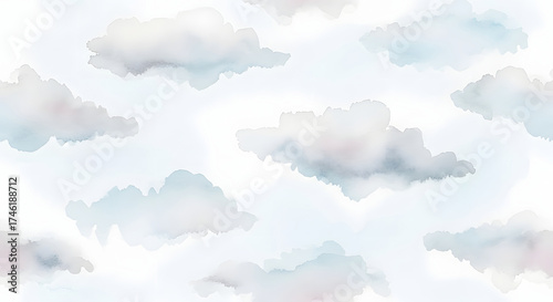 Soft watercolor clouds pattern on a light blue sky background seamless texture